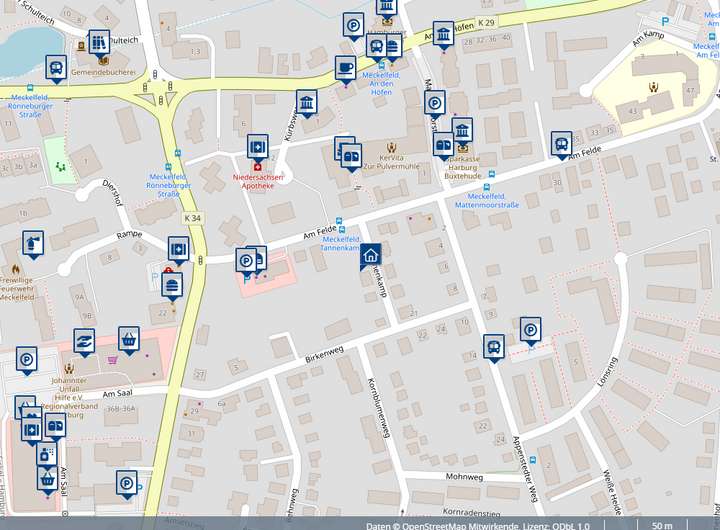 Der Ort Meckelfeld liegt direkt an der Hamburger Stadtgrenze, nur 20 Minuten von der Innenstadt entfernt. Meckelfeld ist ein Teil der Gemeinde Seevetal und hat ca. 10.000 Einwohner. Zwischen Meckelfeld und Hörsten befinden sich die Seen ,,Pulvermühle" und ,,See im großen Moor". Beide Badeseen sind im Sommer immer gut besucht. Durch die gute Infrastruktur mit drei Kindergärten, einer Grundschule und weiterführenden Schulen ist dieser Ort bei Familien sehr beliebt. In unmittelbarer Nähe finden Sie alle wichtigen Einkaufsmöglichkeiten. Außerdem befinden sich hier Ärzte, Apotheken, Banken und Restaurants. Die nächste Bushaltestelle und der Bahnhof mit einer Metronomverbindung nach Hamburg und Lüneburg sind in wenigen Gehminuten erreichbar.