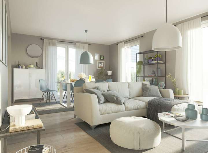 Das geräumige Wohnzimmer ist Treffpunkt für die ganze Familie. Durch die großen Fenster können Sie direkt in Ihren Garten blicken und das einfallende Tageslicht genießen. Auch das Schlaf- und Kinderzimmer haben die richtigen Wohlfühlmaße und bieten jedem Familienmitglied seinen persönlichen Rückzugsort.