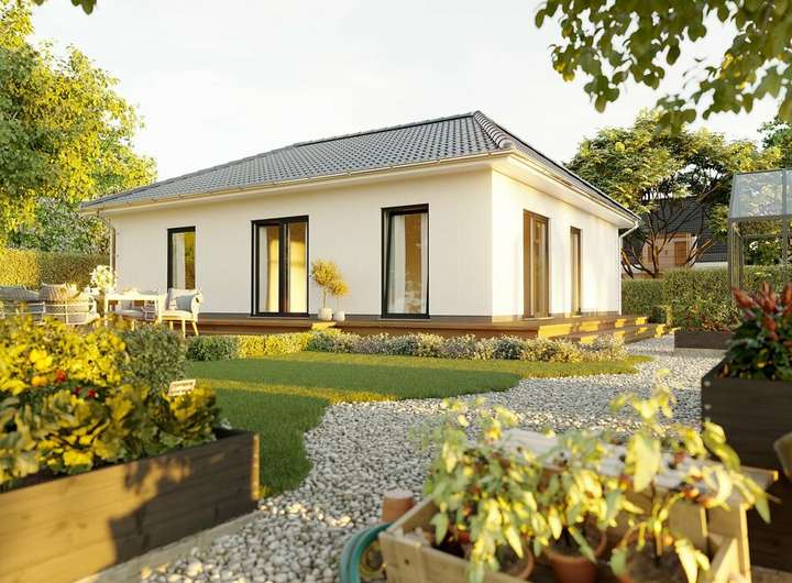 Leben auf einer Ebene - Auf einer Ebene mit der Natur, ein Leben ohne Stufen – der Bungalow 92 ist genau das richtige Haus für alle, die auf das Treppen steigen verzichten möchten. In diesem Haus können Sie sich auf 92 Quadratmetern ohne lange Wege wohlfühlen.