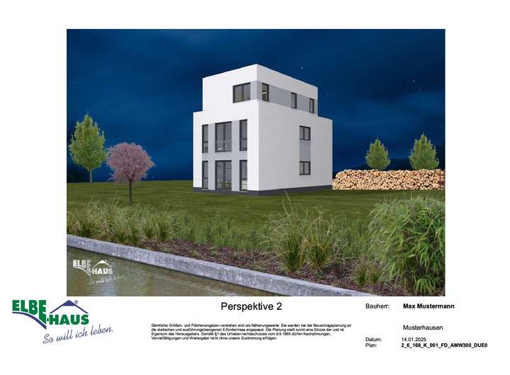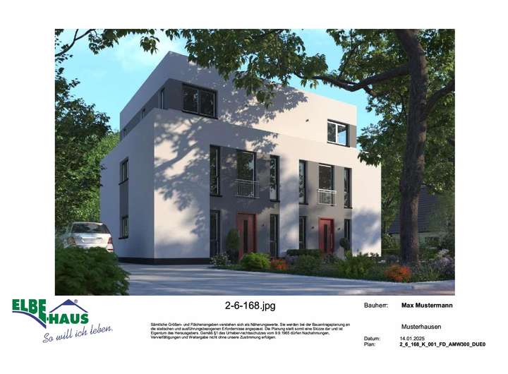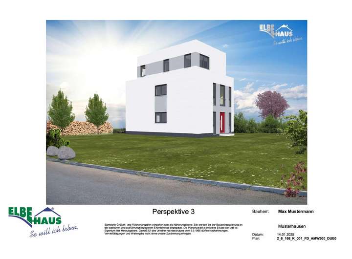 Dieses innovative Elbe-Haus® wird in massiver Bauweise von qualifiziertem Fachpersonal errichtet. Wir planen und projektieren nach Ihren Vorstellungen und Wünschen und somit ist wirklich jedes Haus einzigartig. Beachten Sie bitte, dass das abgebildete Haus lediglich ein Bebauungsbeispiel ist. Das Grundstück kann unter Berücksichtigung der örtlichen Bauvorschriften mit Ihrem Wunschhaus von Elbe-Haus® errichtet werden.
