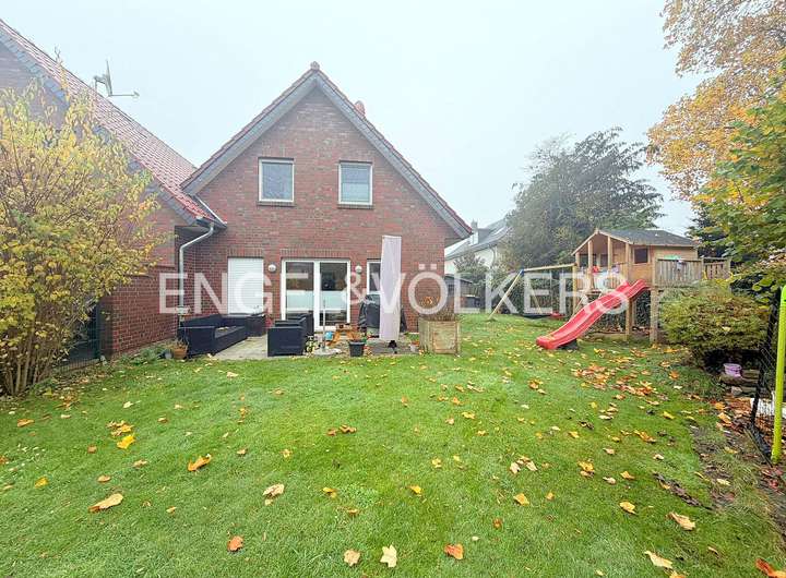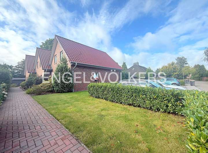 Dieses äußerst gepflegte und moderne Reihenendhaus, erbaut im Jahr 2016 in der beliebten Gemeinde Schortens, Ortsteil Grafschaft, überzeugt durch sein zeitgemäßes Design, die hochwertige Ausstattung und die attraktive Lage. Die Immobilie bietet eine komfortable Wohnfläche von ca. 103 m², verteilt auf vier Zimmer, und steht auf einem anteiligen Grundstück von ca. 345 m² (nach WEG geteilt). Das aktuelle Mietverhältnis endet zum 31.01.2026, sodass die Immobilie ab dem 01.02.2026 bezugsfrei zur Verfügung steht. Dies bietet sowohl Eigennutzern Planungssicherheit als auch Kapitalanlegern die Möglichkeit einer sofortigen Neuvermietung zu marktgerechten Konditionen. Die durchdachte Aufteilung umfasst alle Annehmlichkeiten des modernen Wohnens: Im Erdgeschoss führt der Windfang zum Gäste-WC und in die zentrale Diele mit Zugang zum separaten Hauswirtschaftsraum sowie zum großzügigen Wohn- und Esszimmer und zur Küche. Im Obergeschoss befinden sich ein Schlafzimmer, zwei Kinderzimmer und das moderne Bad, welches mit Wanne und Dusche ausgestattet ist. Der geräumige Spitzboden im Dachgeschoss bietet zudem eine praktische Ausbaureserve. Das Haus präsentiert sich in einem neuwertigen Zustand mit hochwertiger Ausstattung, inklusive Fußbodenheizung im gesamten Gebäude sowie Fliesen- und Vinylböden. Ein pflegeleichter Garten mit Gartenhaus sowie zwei separate PKW-Stellplätze runden dieses attraktive Angebot ab und vereinen modernen Wohnkomfort mit bester Bauqualität. Der Anschluss für Glasfaser liegt bereits am Haus.