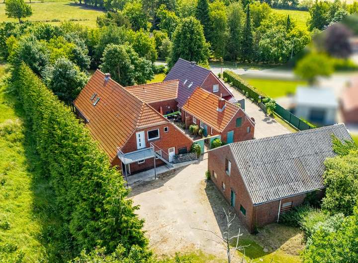 In idyllischer Lage des ostfriesischen Ortes Utarp bietet dieses charmante Wohnensemble auf ca. 2.504 m² Grundstücksfläche eine seltene Kombination aus sofort nutzbarem Wohnraum, attraktiven Vermietungschancen und spannendem Ausbaupotenzial. Die Immobilie umfasst drei getrennte Wohneinheiten, einen ausbaufähigen Scheunentrakt sowie ein separates Nebengebäude mit Doppelgarage.