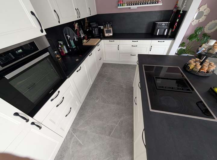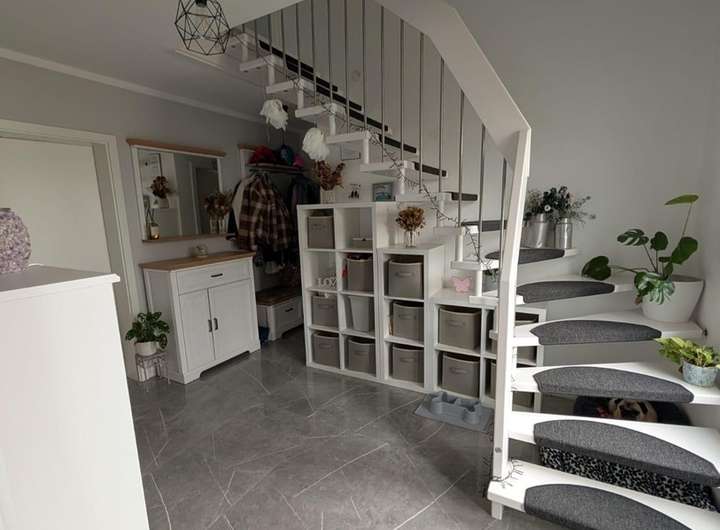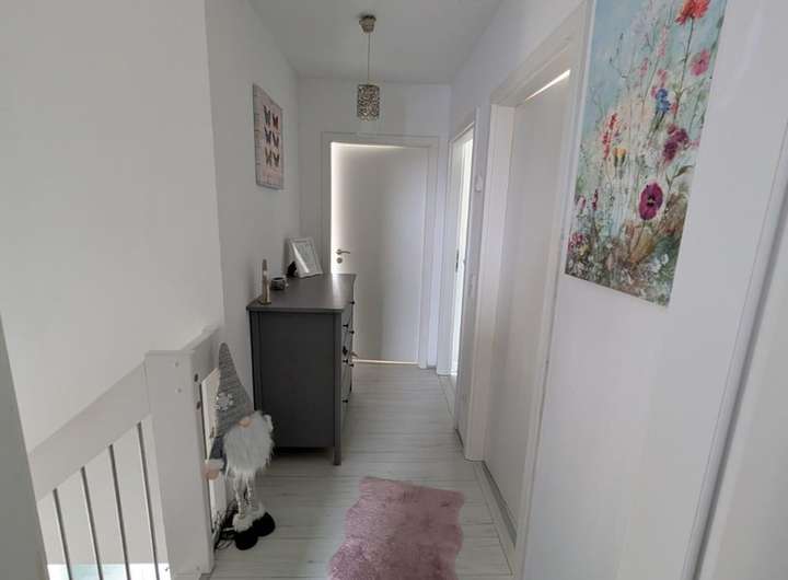 Das Haus verfügt über drei gut geschnittene Schlafzimmer, ein Gästezimmer bzw. Büro, zwei Badezimmer, einen Hauswirtschaftsraum sowie eine praktische Speisekammer. Die neue, moderne offene Einbauküche im Landhausstil ist ein besonderes Highlight und lässt keine Wünsche offen.