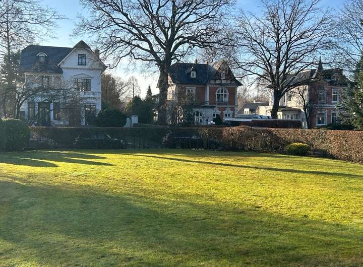 Die Doppelhaushälften befinden sich in einer sehr begehrten Wohnlage in Rellingen, einem der historisch und architektonisch reizvollsten Straßenzüge der Gemeinde. Die Villenbebauung entlang der Strasse entstand zwischen 1900 und 1908 und prägt bis heute das besondere Erscheinungsbild dieses Quartiers. Charakteristisch für diese Straße sind die repräsentativen Wohnhäuser, die hinter gepflegten Vorgärten in einheitlicher Bauflucht liegen. Die überwiegend zweigeschossigen Gebäude spiegeln die stilistische Vielfalt der Entstehungszeit wider. Aufwändige Fassadengestaltungen, sorgfältige Proportionen und liebevoll ausgearbeitete Details verleihen dem Ensemble seinen besonderen Charme.