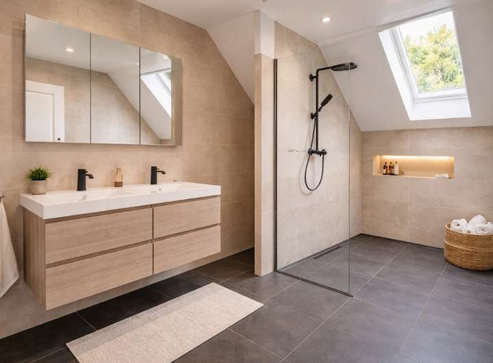 + Moderne Bäder: Stilvolle Sanitärkeramik, bodengleiche Duschen und hochwertige Armaturen.
