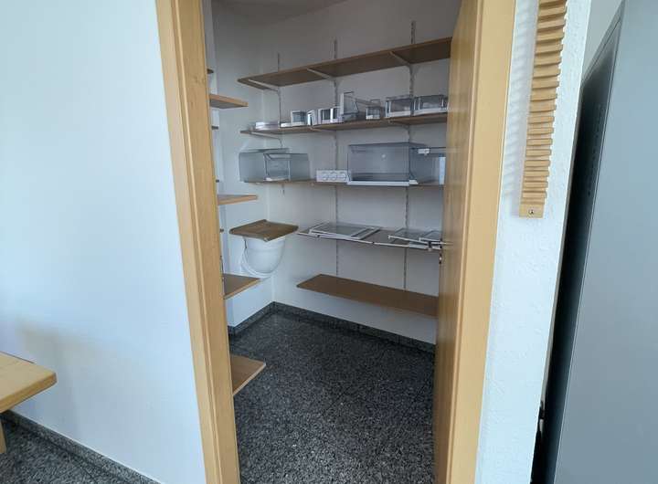 Wohnbereich. Die Einbauküche mit angrenzender Speisekammer