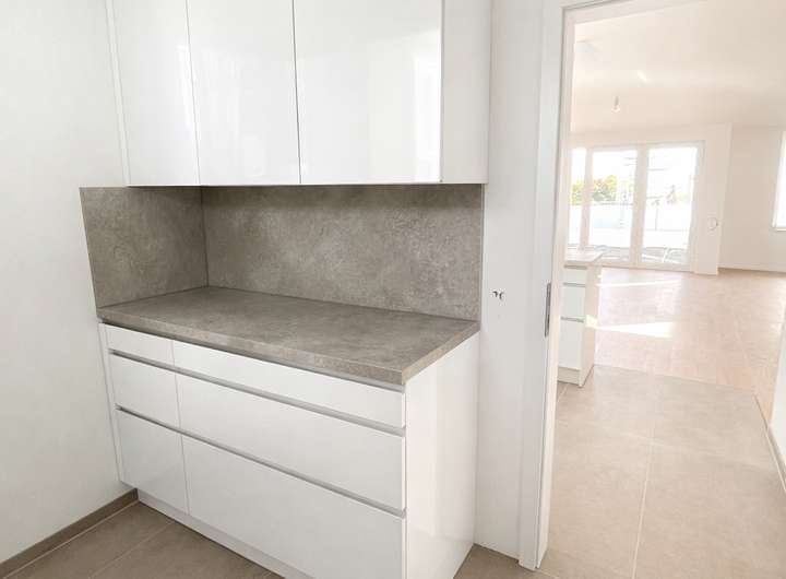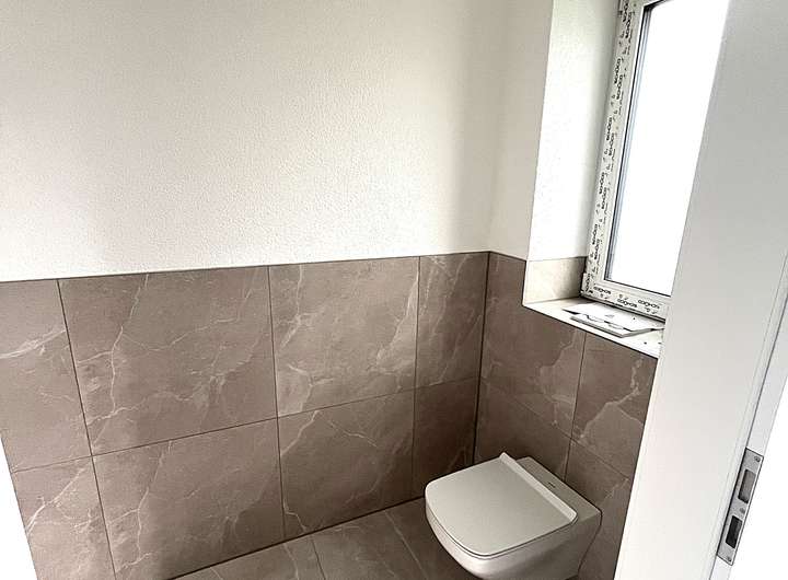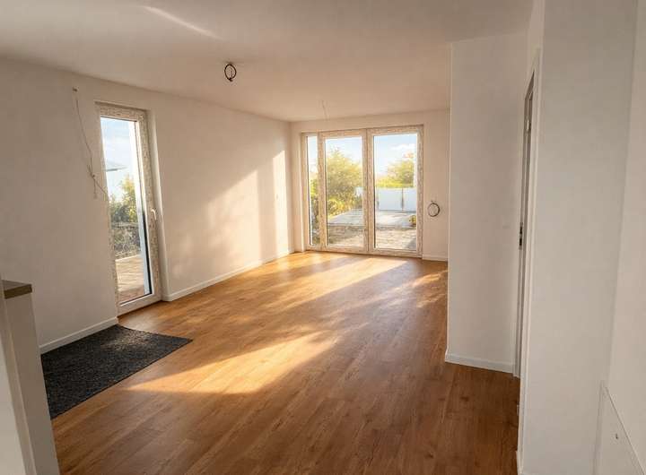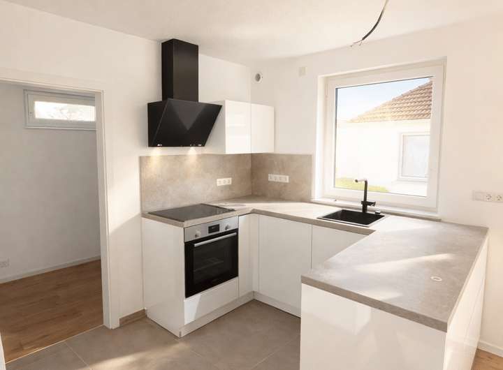 Das Haus mit 139 qm, um das es sich hier handelt, besticht durch eine gehobene Innenausstattung. Ab dem 15.02.2026 können Sie die attraktive, einstöckige Doppelhaushälfte beziehen. Neben vier schönen Zimmern zählen zu dem Objekt ein Badezimmer, sowie ein separates Gäste-WC. Besonders toll ist die großzügige Terrasse mit Garten, die Ihnen im Sommer zu einem regelrechten Outdoor-Zimmer werden kann. Beachten Sie, dass es sich hierbei um ein barrierefreies Objekt handelt. Durch den Auto-Stellplatz, der sich direkt am Haus befindet, können Sie Ihre Wocheneinkäufe entspannt in die bereits vorhandene Einbauküche (inkl. BOSCH Geräte) + großem Abstellraum direkt dahinter mit zusätzlicher Küchenzeile tragen. Ebenfalls komfortabel ist der Kellerraum, der Stauraum für Gegenstände bietet.