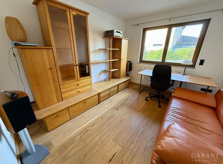 Daneben befinden sich im Erdgeschoss ein modernes Badezimmer mit Dusche, einem Schlafzimmer, einem Arbeits- sowie einem Kinderzimmer. Alle Wohnräume sind mit edlem Parkettboden ausgestattet.