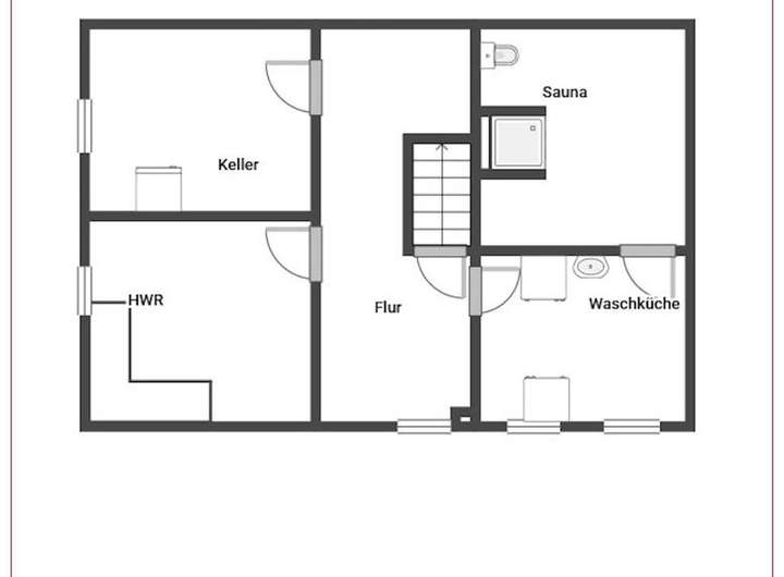Das Kellergeschoss verfügt über ca. 70 qm Nutzfläche. Diese verteilt sich auf den Hauswirtschaftsraum, die Waschküche, einen Vorratsraum sowie auf einen Raum mit Sauna und Dusche.