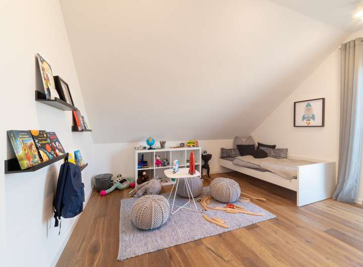 Das Design 10.2 steht für modernes Wohnen mit Charakter. Auf 140 m² verbindet sie Design und Alltag auf harmonische Weise. Der offene Wohn- und Essbereich bildet das Herzstück - hell, großzügig und mit einer geraden Treppe, die als Designelement den Raum gliedert. Büro, Gäste-WC, Hauswirtschaftsraum und Speisekammer machen das Erdgeschoss ebenso funktional wie stilvoll. Im Obergeschoss empfängt ein lichtdurchfluteter Flur, der zu den privaten Rückzugsorten führt: ein Elternzimmer, zwei Kinderzimmer und ein großzügiges Familienbad. Unter dem klassischen Satteldach entsteht ein Zuhause, das Ästhetik und Geborgenheit vereint.