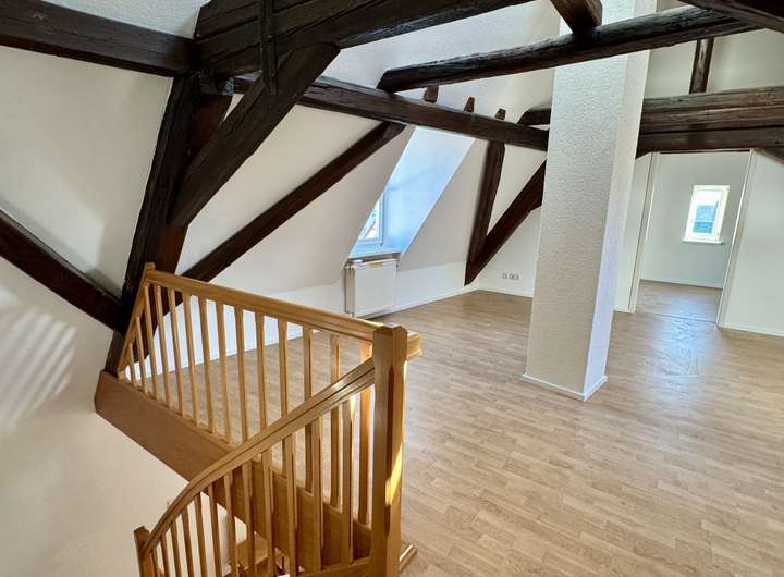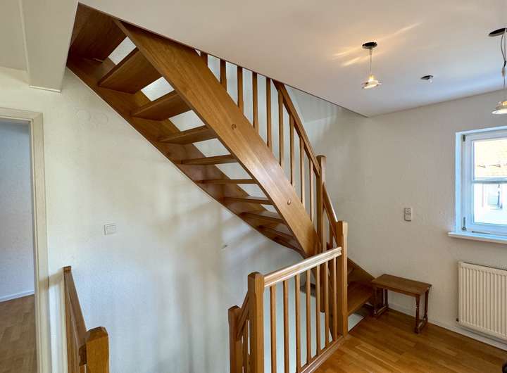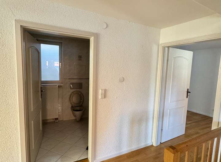 Über eine charmante Holztreppe erreichen Sie das erste Obergeschoss mit drei großzügigen Räumen, die flexibel als Schlaf-, Arbeits- oder Kinderzimmer genutzt werden können. Die Beheizung erfolgt hier ebenfalls wahlweise über Fußbodenheizung oder klassische Heizkörper. Ein Badezimmer mit Badewanne rundet diese Etage ab.