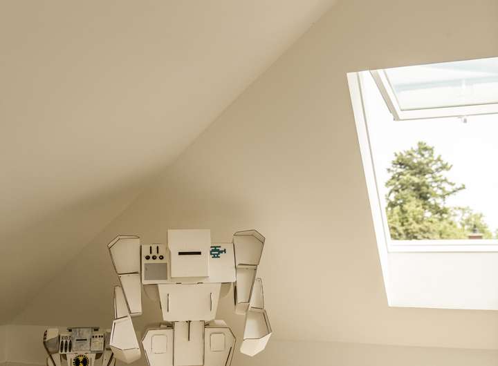 Das ausgebaute Dachgeschoss mit Loftcharakter wirkt wie ein kreatives Atelier - ein Raum der Möglichkeiten: als Homeoffice, Hobbyraum oder Rückzugsort (für Yoga und Pilates) mit Blick in den Himmel.