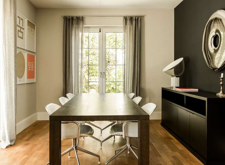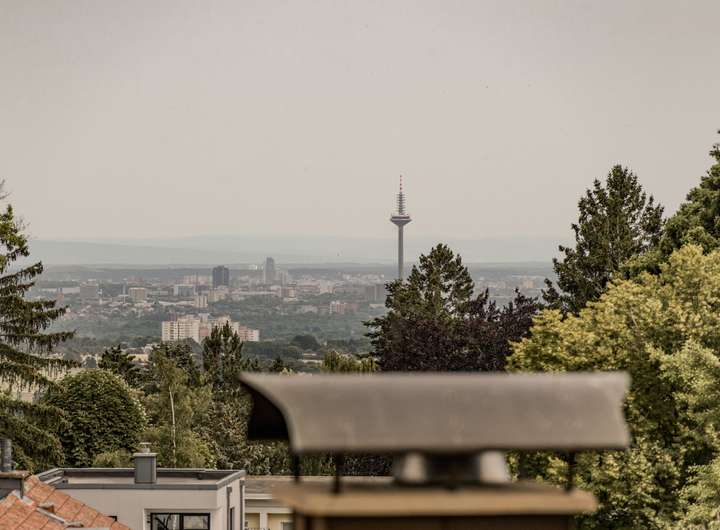 Vom Ober- und Dachgeschoss schweift der Blick weit über die sanften Hügel des Taunus – mit der Kronberger Burg im Vordergrund und der schimmernden Frankfurter Skyline am Horizont. Orte, an denen Frühstücke in lange, entspannte Mittagessen übergehen und Abende in gesellige Sommernächte münden.