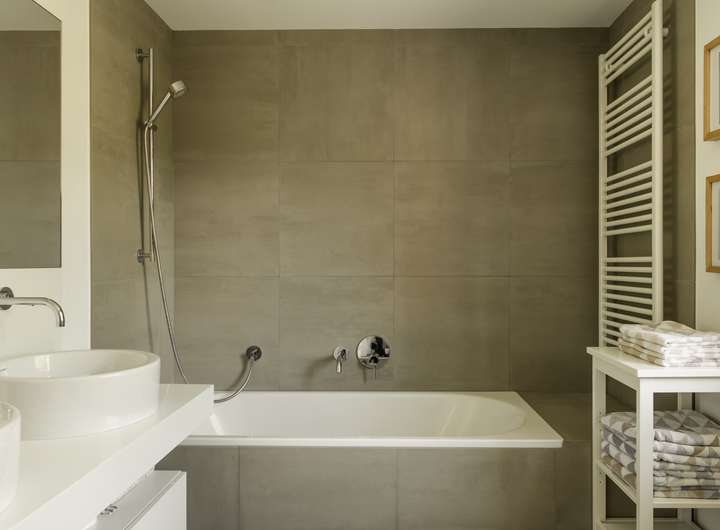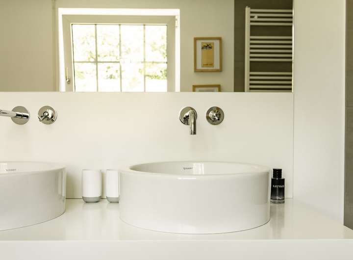 - Hochwertige Badezimmereinbauten, darunter mehrere Armaturen von Vola