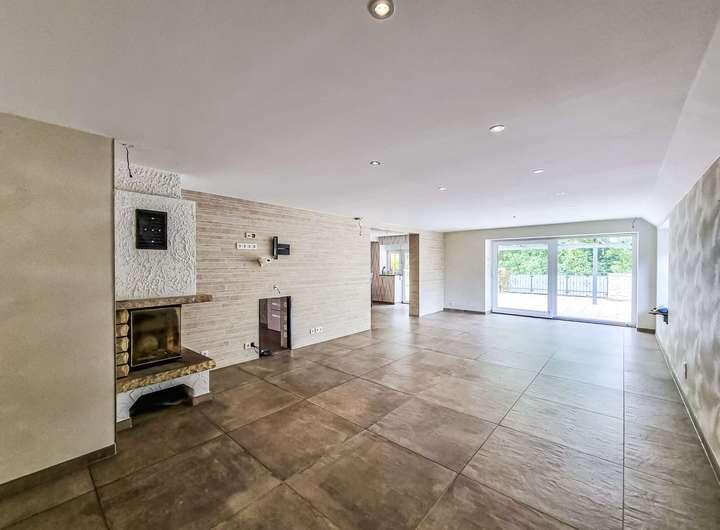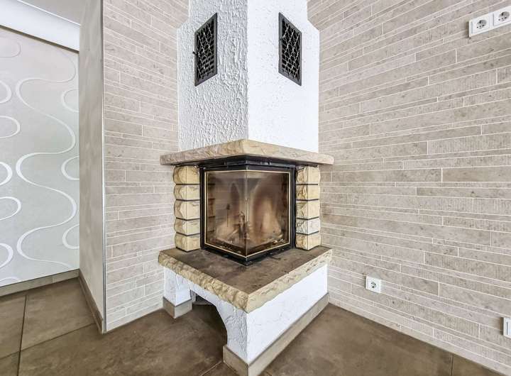 Das großzügige Wohnzimmer besticht durch einen Kamin und einen direkten Zugang zur großen in Richtung Westen ausgerichteten Terrasse (43,91 m²), die mit einer Markise ausgestattet ist. Über eine Außentreppe gelangt man in den 244 m² Gartenbereich der den zukünftigen Eigentümern zur Verfügung steht. Durch die frei nutzbaren Nebenflächen vergrößert sich dieser Anteil nochmal.
