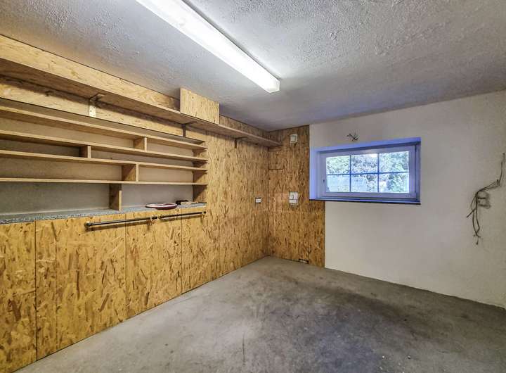 Im Erdgeschoss empfängt Sie ein praktischer Eingangsbereich mit direktem Zugang zu zwei großen Garagen – eine davon verfügt über eine Arbeitsgrube. Zudem finden Sie hier einen Hauswirtschaftsraum sowie den Heizungsraum. Ein kleiner Keller ist verfügbar. Die großzügigen Garagen bieten nicht nur ausreichend Stellplatz für Fahrzeuge, sondern auch viel Platz für Werkzeuge und Lagermöglichkeiten. Zwei weitere Stellplätze befinden sich vor dem Haus unter dem Carport.