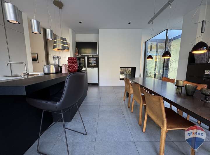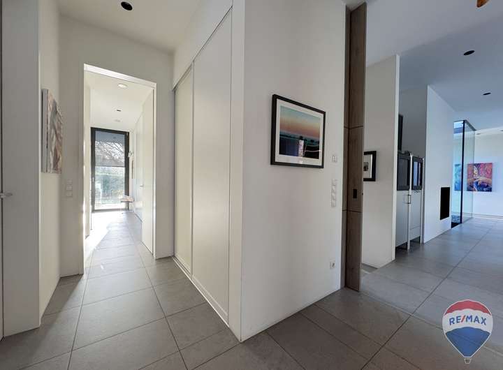 Stilvolle Präsens, hochwertige Ausstattung mit modernster Technik kennzeichnen dieses stilvolle Haus. Dieses Einfamilienhaus besticht durch Eleganz, ist außen wie innen im modernen Stil gehalten und beeindruckt durch ein strukturiertes sowie großzügiges Wohnkonzept. Die architektonisch wertvolle räumliche Gestaltung präsentiert sich mit einem offenen Wohnkonzept.