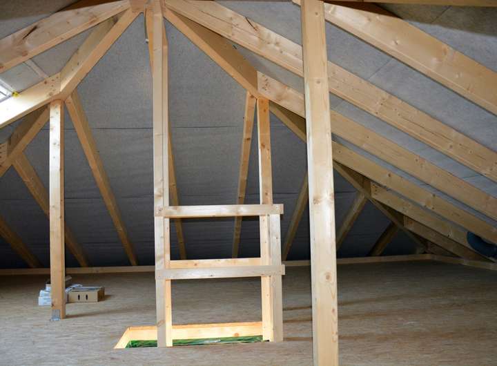 Auf dem Dachboden ist eine Abstellfläche vorhanden.