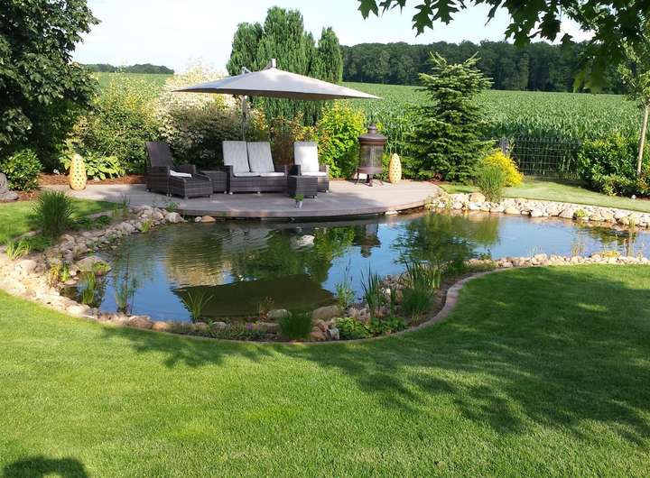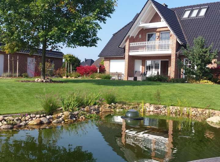Für hohen Wohnkomfort sorgen eine Klimaanlage, Fußbodenheizung und Außenjalousien, während Eingangskamera und Alarmanlage ein hohes Maß an Sicherheit bieten. Der Garten ist ein echtes Highlight: Ein idyllischer Koiteich mit großzügiger Holzterrasse, stimmungsvolle Gartenbeleuchtung sowie ein liebevoll angelegter Bachlauf verleihen dem Außenbereich eine besondere Atmosphäre. Eine Beregnungsanlage zur komfortablen Gartenbewässerung sowie ein großzügiger, separater Abstellraum bieten zusätzlichen praktischen Nutzen. Abgerundet wird dieses attraktive Angebot durch eine zum Haus gehörende Doppelgarage.