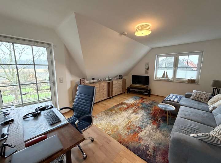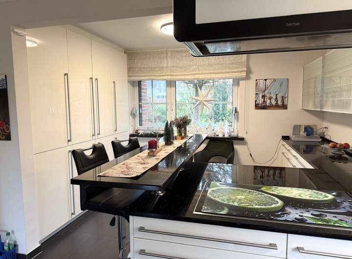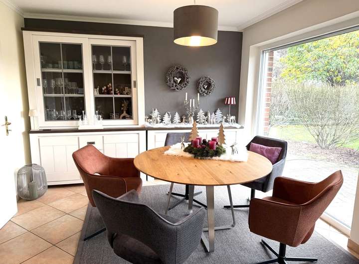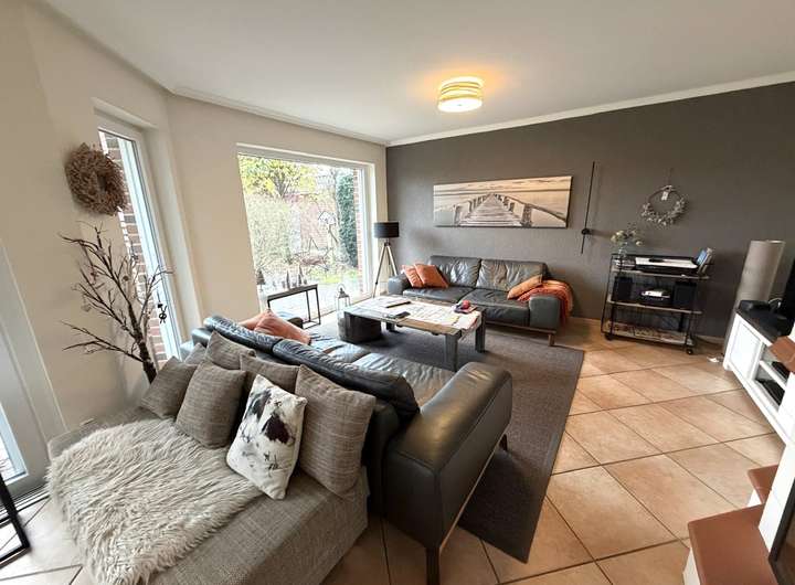 Auf ca. 180 m² Wohnfläche bietet das Haus großzügigen Raum für die ganze Familie und zugleich einen Rückzugsort zum Entspannen und Wohlfühlen. Bereits beim Eintreten empfängt Sie ein freundlicher, einladender Flur. Das Erdgeschoss überzeugt mit einem weitläufigen Wohn- und Essbereich, dessen bodentiefe Fenster einen wunderbaren Blick in den liebevoll gestalteten Garten eröffnen. Die lichtdurchflutete Wohnküche mit hochwertiger Einbauküche aus dem Jahr 2017 besticht durch ihre stilvolle Gestaltung und hohe Funktionalität. Im angrenzenden Wohnbereich laden die helle Essecke sowie der gemütliche Kachelofen zum Verweilen ein. Ergänzt wird diese Ebene durch ein gepflegtes Duschbad, eine Garderobe sowie einen praktischen Hauswirtschaftsraum.