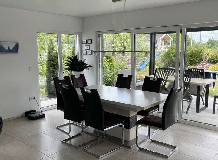 Dieses exklusive Einfamilienhaus wurde 2017 erbaut und befindet sich in einem neuwertigen Zustand (MINT-CONDITION) mit gehobener Innenausstattung. Auf ca. 170 m² Wohnfläche und 5 Zimmer verteilen sich zwei Vollgeschosse. Das Haus verfügt über ein großzügiges Grundstück von ca. 571 m² und bietet eine moderne Wärmepumpenheizung. Eine Garage mit 2 Stellplätzen sowie ein zusätzlicher Außenstellplatz sind vorhanden. Das Haus verfügt über ein Gäste-Bad. Die Einbauküche ist bereits vorhanden. Haustiere sind nach Absprache erlaubt. Das Haus ist ab dem 01.01.2026 verfügbar.