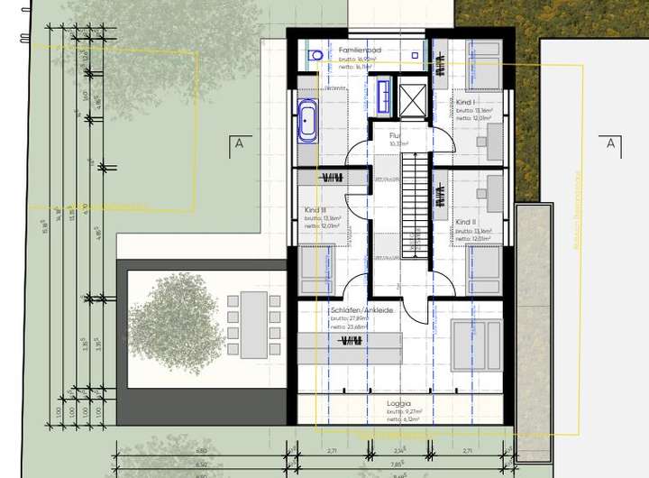 Es liegt eine gültige Baugenehmigung für den Bau eines Einfamilienhauses mit 1½ Geschossen sowie einer großzügigen Garage vor.