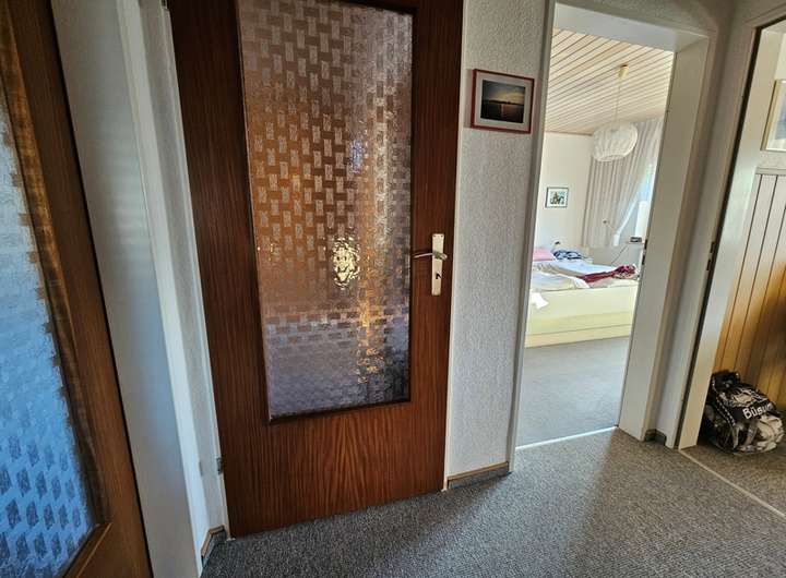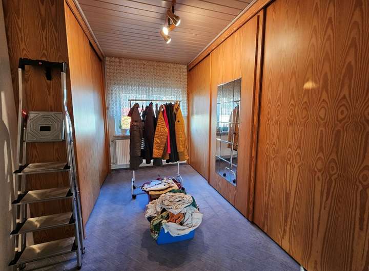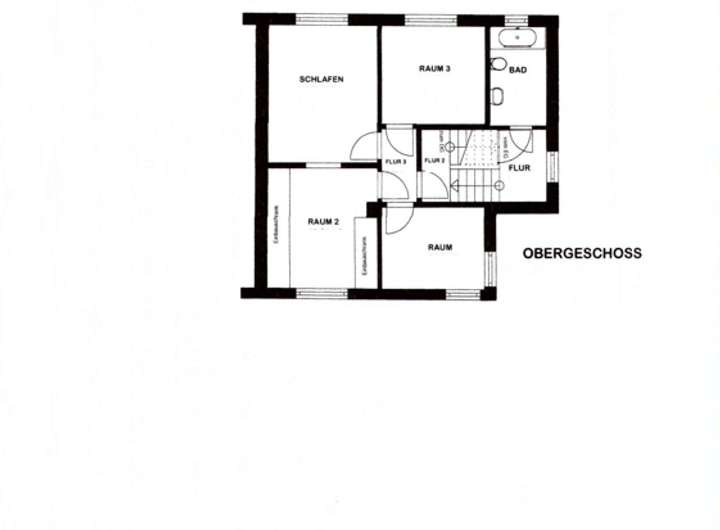 Im Obergeschoss befinden sich vier gut geschnittene Zimmer die allesamt Tageslicht geflutet sind und gute Stellmöglichkeiten bieten. Die beiden größeren Zimmer wurden miteinander verbunden so das hier ein großes Schlafzimmer mit Ankleidebereich entstanden ist. Der Durchbruch der die beiden Zimmer miteinander verbindet kann mit wenig Aufwand wieder verschlossen werden, so dass hier zwei separate Zimmer entstehen können. Auf dieser Ebene befindet sich ebenfalls ein Bad mit Fenster und Badewanne.