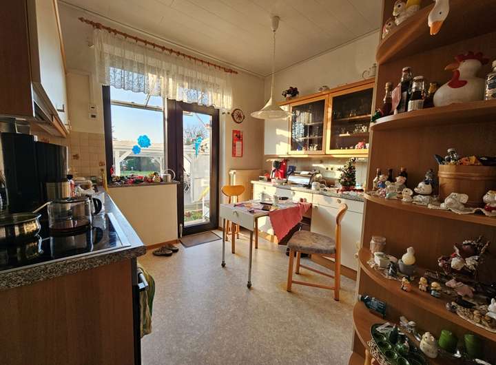 Im Erdgeschoss befindet sich ein bereits saniertes Bad mit Fenster und bodentiefer Dusche. Das großzügige Wohnzimmer samt Essbereich bietet gute Stellmöglichkeiten, so das man es sich hier gemütlich machen kann. Die Küche hat eine funktionale Größe und verfügt über einen Zugang zum Garten. Die verbaute Einbauküche samt neuwertiger elektronischer Geräte verbleibt im Haus.