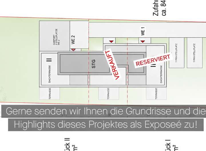 2 Stellplätze direkt am Haus (Optional mit Garage od. Carport)