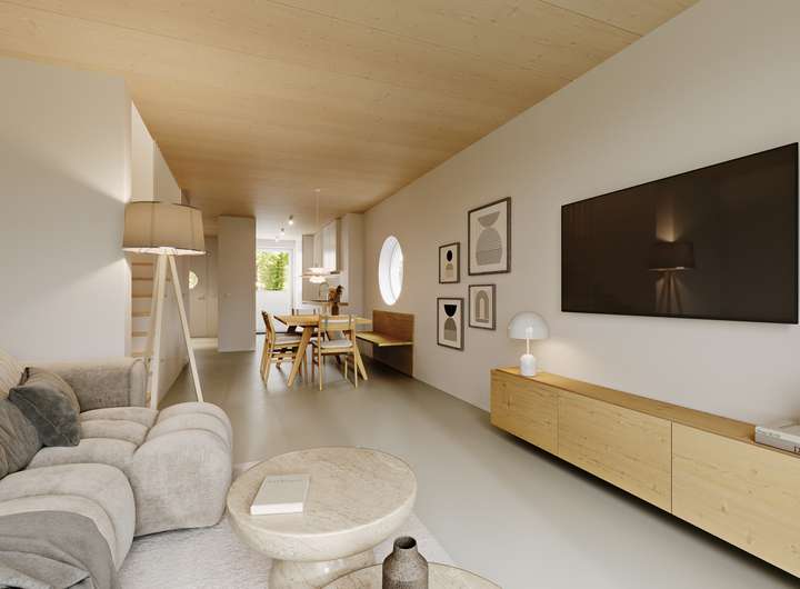 + Innenausstattung: Sichtbeton Decken, wohngesunder Linoleumboden, Bad + separates WC