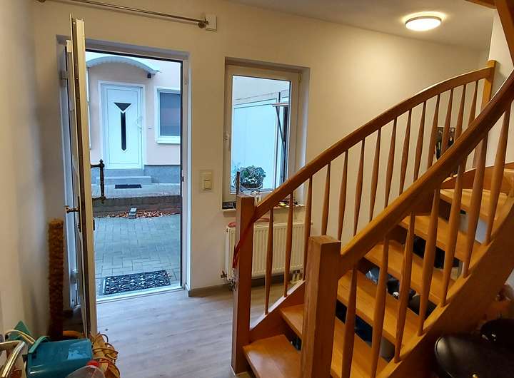 Das familienfreundliche Verkaufsobjekt wurde ca. 2000 in massiver Bauweise erbaut und ist nicht unterkellert. Diese Doppelhaushälfte verfügt über 5 Zimmer über 3 Wohnebenen. Im EG des Hauses befindet sich der Eingangsbereich, das große und helle Wohnzimmer mit Essbereich und Ausgang zur vorderen Terrasse und dem Garten, die Küche (ohne EBK) mit Ausgang zur hinteren Terrasse, das Gäste-WC sowie der HWR. Im OG befindet sich das Schlafzimmer, zwei Kinderzimmer und das Badezimmer (Vollbad mit Fenster). Im DG befindet sich der komplett ausgebaute Spitzboden mit einem großen Galeriefenster. Am Haus befindet sich die Garage, die zu einer winterfesten Hobbywerkstatt umgebaut wurde, jedoch zu einer reinen Garage zurückbebaut werden kann. 2 weitere und hintereinanderliegende PKW-Stellplätze befinden sich vor der Garage. Auf der hinteren Terrasse befinden sich zusätzliche Einbauschränke. Die Ausstattung des Hauses ist gut (Gasheizung mit WW-Aufbereitung, Parkett-, Laminat- bzw. Fliesenböden, Bucheninnentreppen, gute Raumaufteilung, 2 Terrassen, Garage/Hobbywerkstatt, PKW-SP, voll ausgebautes Dachgeschoß-Spitzboden mit guter Stehhöhe). Eine malermaßige Renovierung ist zu empfehlen, kann aber ggf. noch vom Verkäufer übernommen werden. Ein neuer Glasfaseranschluß (Tel+Internet) ist vorhanden.