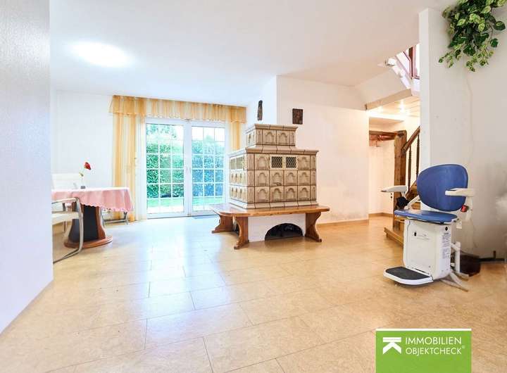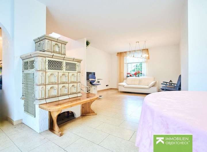 - Kachelofen im Wohnzimmer