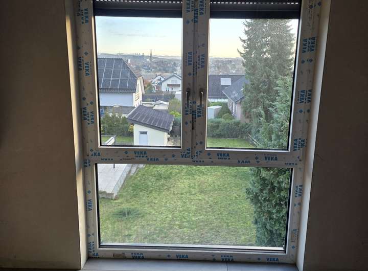 Die Doppelhaushälfte bietet ein offenes, lichtdurchflutetes Wohn- und Esszimmer mit bodentiefen Fenstern entlang der gesamten Ostseite. Insgesamt stehen vier Schlafzimmer zur Verfügung – ideal für Familien oder für Arbeiten im Homeoffice.