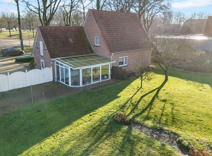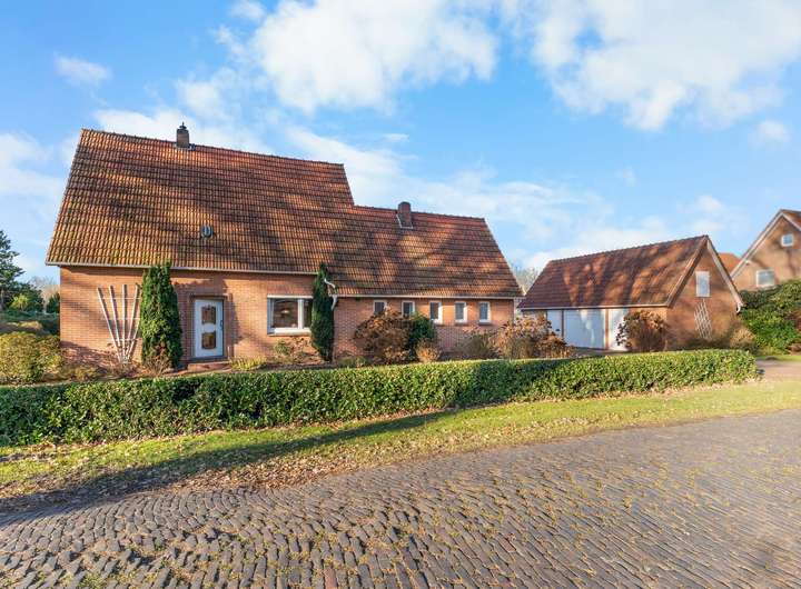In einer beliebten Wohnlage von Edewecht, gelegen in einer besonders ansprechenden Straße mit altem Baumbestand und dem Charakter einer Allee, erwartet Sie dieses charmante Einfamilienhaus auf einem außergewöhnlich großen Grundstück. Bereits die großzügige Zufahrt vermittelt ein Gefühl von Weite und bietet komfortable Parkmöglichkeiten für bis zu vier Fahrzeuge – ideal für Familien, Besucher oder Mehrfahrzeughaushalte.