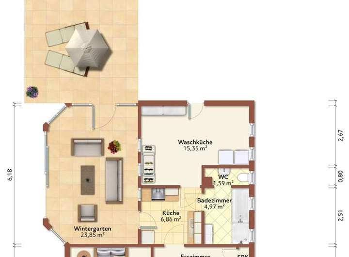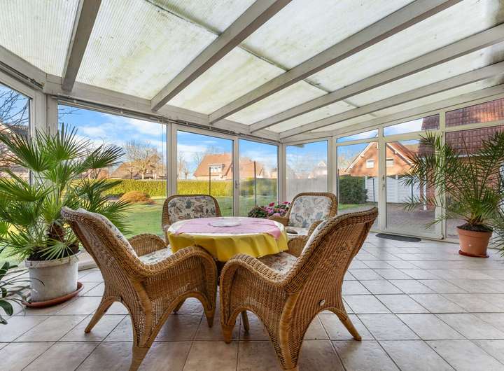 Ein echtes Highlight ist der ca. 23 m² große Wintergarten, der den Wohnbereich erweitert und einen wunderbaren Übergang zwischen Haus und Garten schafft. Von hier aus gelangen Sie direkt auf die Terrasse und in den weitläufigen Garten, der mit seiner Größe von rund 1.934 m² ein wahres Paradies darstellt. Ob Spielbereich für Kinder, liebevoll angelegte Beete, Rückzugsorte im Grünen oder großzügige Gartenfeste – hier sind Ihrer Kreativität kaum Grenzen gesetzt.