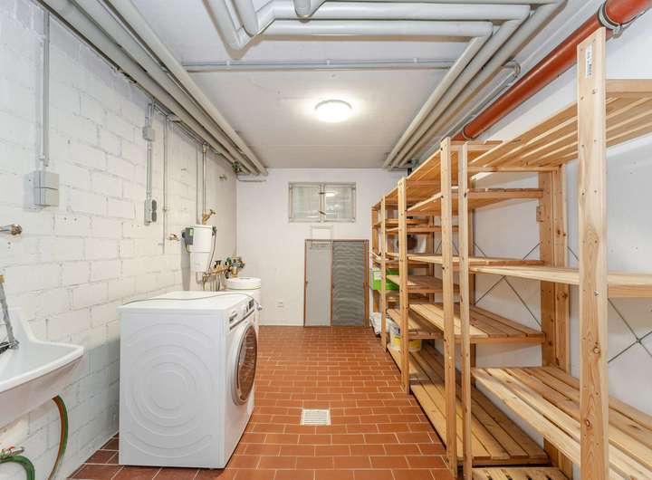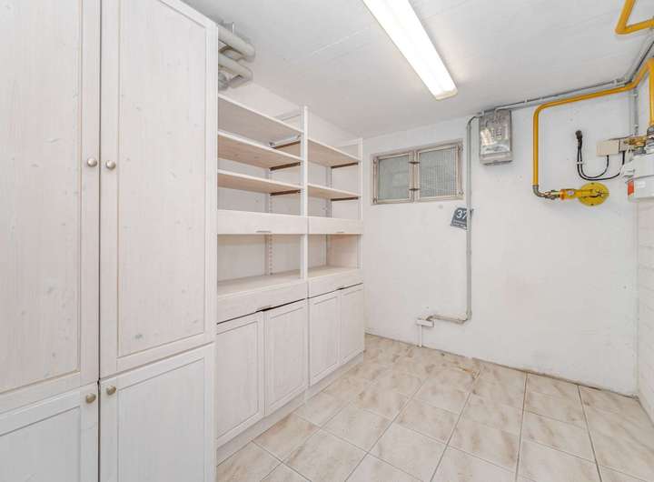 Das Haus ist voll unterkellert, der Keller bietet weit mehr als nur Nutzfläche: Haustechnik und Lagermöglichkeiten sind hier ebenso untergebracht wie ein großzügiger Hobbyraum, der mit Sauna und Dusche noch ein weiteres Highlight bereit hält.