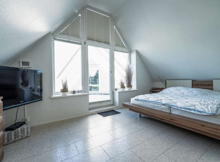 - Großes Badezimmer im Dachgeschoss mit Dusche, Badewanne,