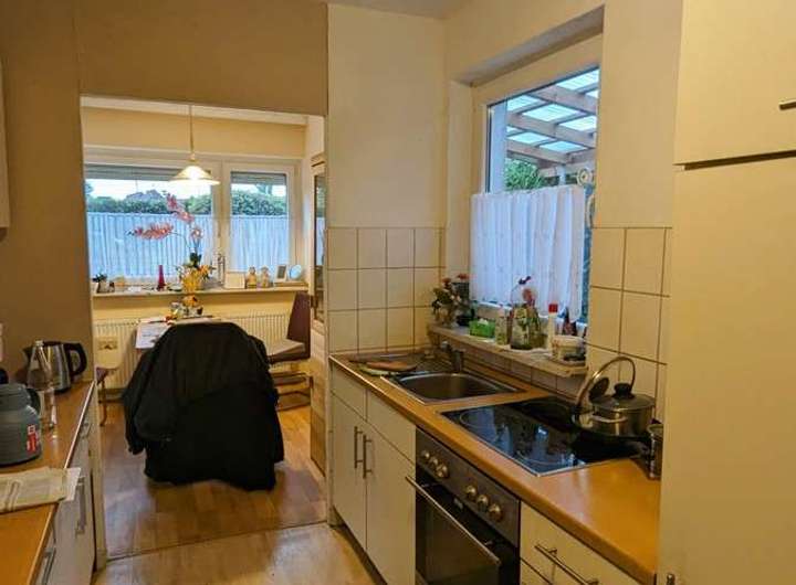 Der Anbau neben der Küche hat eine Seiteneingangstür, so dass Sie von vorne und von hinten ins Haus gelangen können.