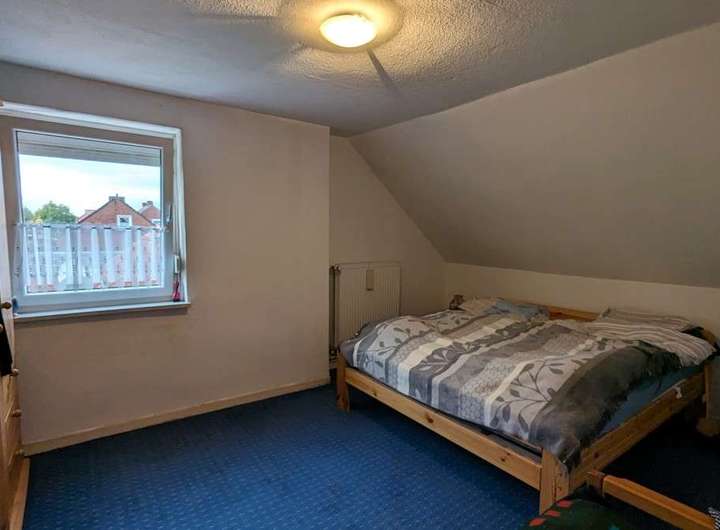 Auf der anderen Seite des Hauses sind ein Bad mit Dusche und WC, ein weiteres Zimmer und die Treppe ins Dachgeschoss.