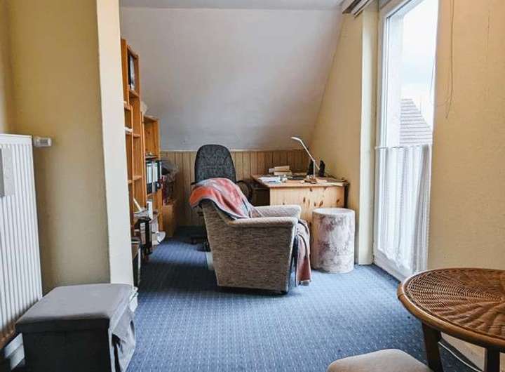 Im DG befinden sich ein Schlafzimmer und derzeit ein Büro mit Tür zum Highlight im Obergeschoss: der großen Dachterrasse.