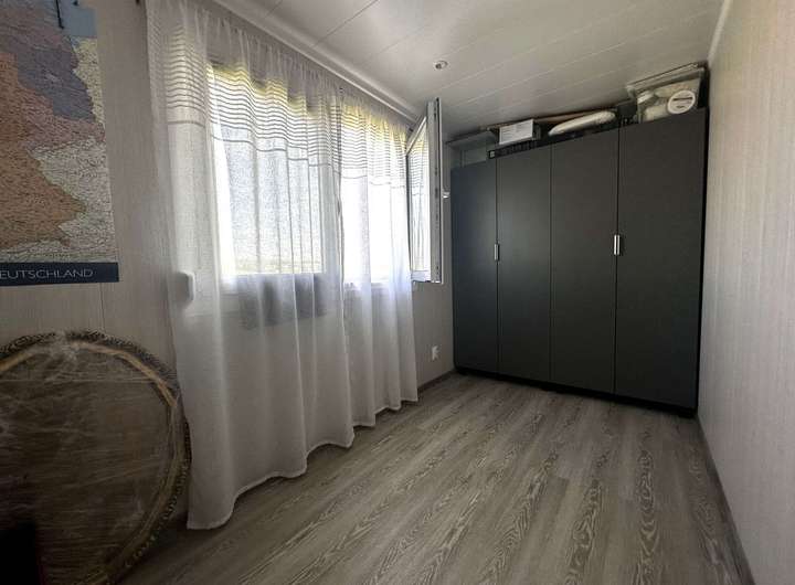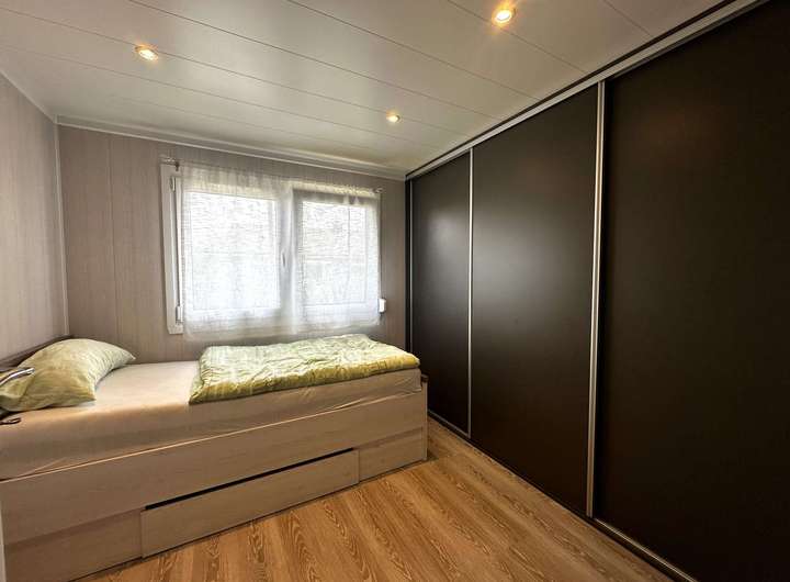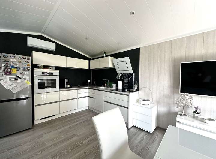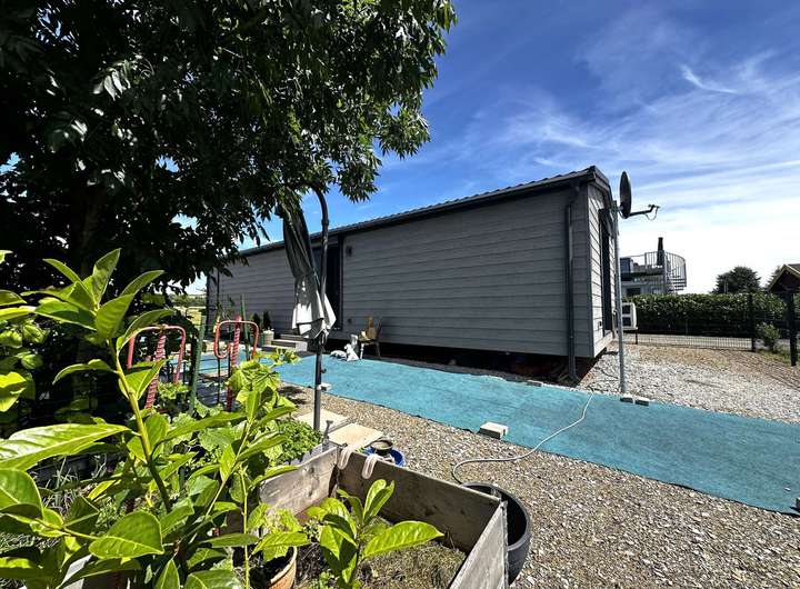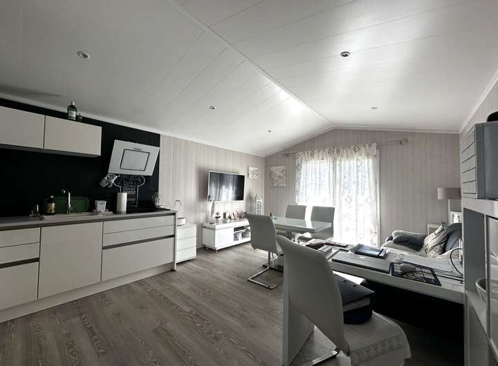 Das Mobilheim ist ein maßgefertigter Neubau aus September 2022, der zeitgemäßes Wohnen perfekt umsetzt. Auf 56 m² Wohnfläche verteilen sich drei helle, modern gestaltete Räume.