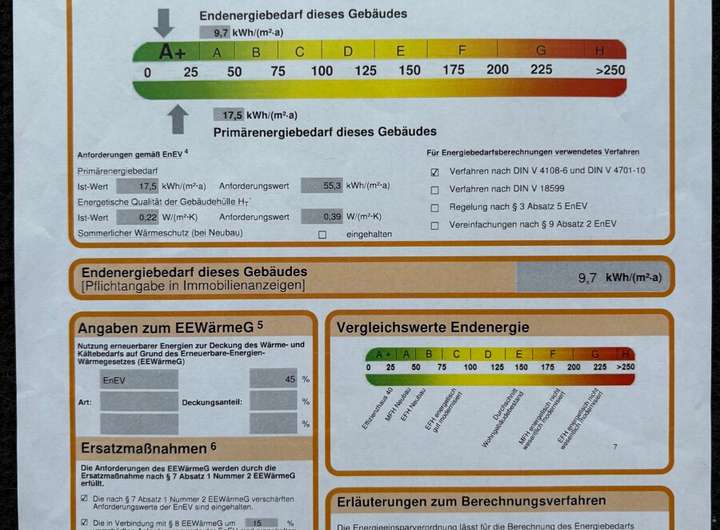 | Energieverbrauchskennwert | 9,7 kWh/(m²*a) |