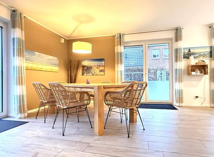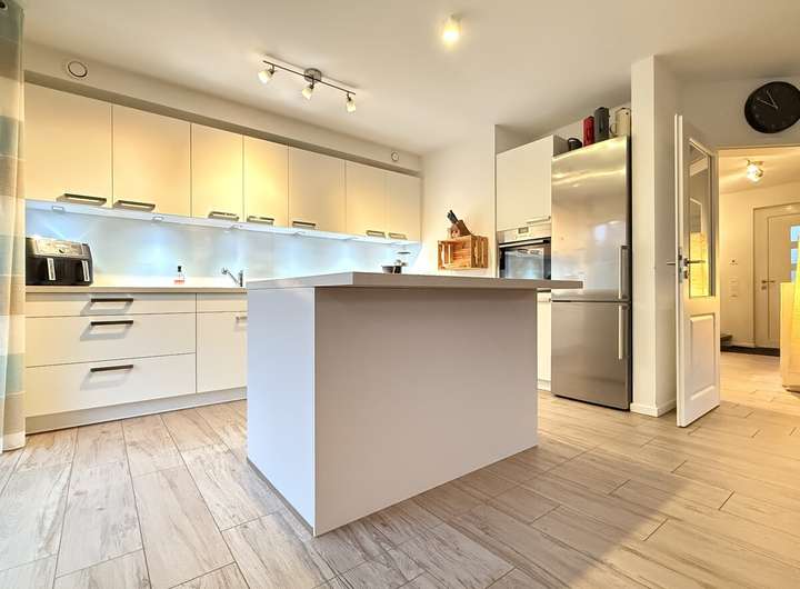 Der offene Wohn- und Essbereich bildet das Herzstück des Hauses. Große, helle Flächen schaffen Raum für gemeinsames Leben, Lachen und Zusammensein. Die voll ausgestattete Küche mit Kochinsel lädt zum Kochen, Genießen und Verweilen ein.