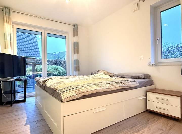 Praktische Einbauschränke im Erdgeschoss sorgen dafür, dass alles seinen Platz hat. Ergänzt wird diese Ebene durch ein Zimmer sowie ein Gäste-WC mit Dusche, eine separate Waschküche.
