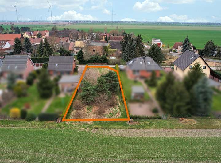 Baugrundstück von 780m² in einer ruhigen, ländlichen Umgebung mit unverbautem Blick aufs Feld