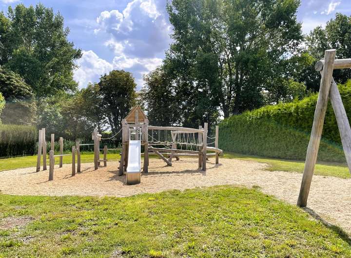Besonders attraktiv für Familien: Nur 3 Gehminuten vom Grundstück entfernt liegt der moderne Kinderspielplatz "Flutgraben". Eine ideale Umgebung für Kinder, um draußen zu spielen und die Natur zu genießen.