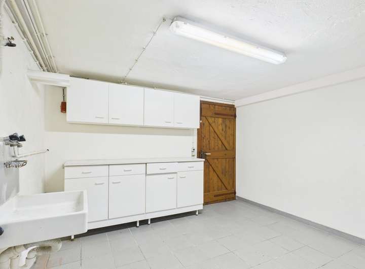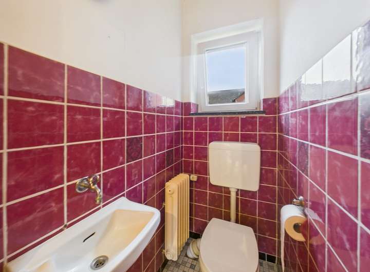 Zusätzlichen Raum bietet das umfangreiche Kellergeschoss. Hier stehen neben Flur, Heizraum und Abstellraum gleich drei helle Allzweckräume zur Verfügung, die sich ideal als Hobby-, Arbeits- oder Lagerräume nutzen lassen. Ein weiteres Gäste-WC sorgt auch auf dieser Ebene für Komfort. Ein besonderes Highlight ist der direkte Zugang vom Keller in den Garten sowie zu den Stellplätzen – äußerst praktisch im Alltag.