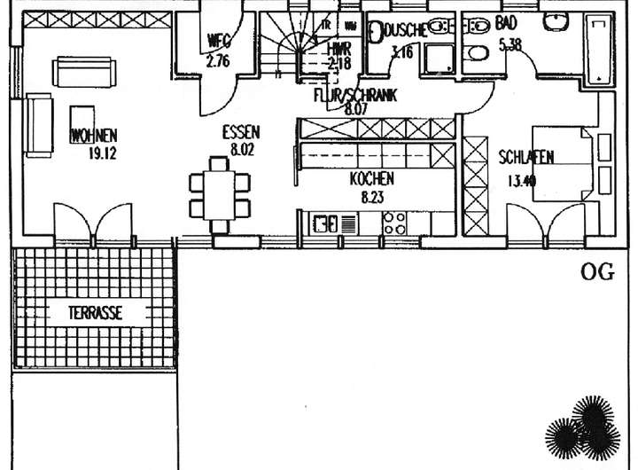 Anmerkung: Das Haus ist für eine vielköpfige Familie ungeeignet, da die beiden Wohnungen jeweils nur über den Außenbereich zu erreichen sind.
