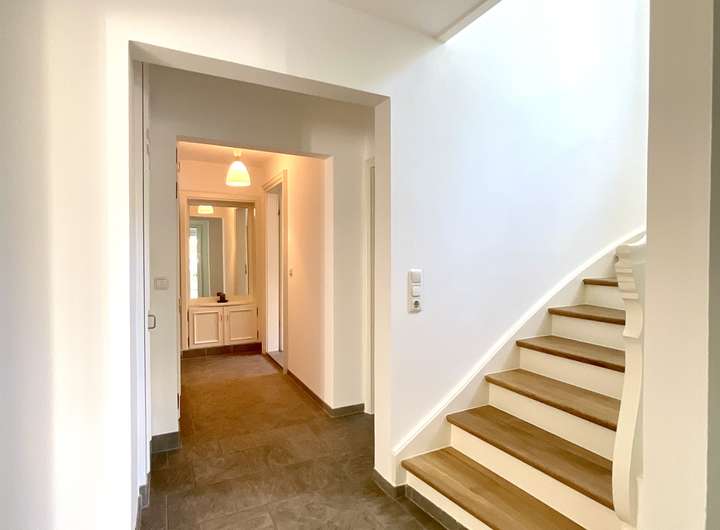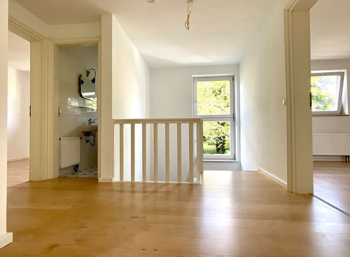 Diese exklusive Doppelhaushälfte mit idyllischem Garten, Carport und Stellplatz liegt in ruhiger Lage im Ortskern von Gauting. Die vollgeschossigen Wohnetagen sowie das Untergeschoss sind ausgezeichnet geschnitten und besonders offen gestaltet. Ausstattungen wie helles Eichenparkett, weiße Holzfenster und Eingangstür von Bayerwald, voll ausgestattete Einbauküche mit Markengeräten sowie Tageslicht-Bäder mit gehobener Ausstattung, Fußbodenheizung, bodenebene Duschen, cremeweiße Innenraumtüren, ein behaglicher, zeitloser Kamin schaffen ein angenehmes Wohnumfeld und ein Zuhause zum Wohlfühlen. Vom charmanten und teilweise überdachten Eingangsbereich gelangt man in den Flur des Erdgeschosses mit intelligent integrierten Einbauschränken. Im großzügigen Wohnbereich sorgt ein behaglicher Kamin für Wohlfühlatmosphäre. Vom Wohnzimmer aus gelangt man über eine 3-teilige, komplett zu öffnende Terrassentür auf die Sonnenterrasse mit Blick in den Gartenbereich. Als Einheit verbindet sich der überdachte Freisitz mit der gefliesten Sonnenterrasse und lädt zum Verweilen mit Blick in den angelegten Garten ein. Neben dem Wohnzimmer befindet sich die voll ausgestattete Wohnküche mit Mittelinsel und einem ebenfalls vorhandenen Zugang zur Sonnenterrasse und dem überdachten Freisitz. Die Wohnküche wird ergänzt durch eine separat vorhandene Speisekammer mit Fenster und vorhandenen Vorratsregalen. Ein Tageslicht-Badezimmer mit Fußbodenheizung sorgt für Relaxzeiten. Über eine aufwendig restaurierte Echt-Holztreppe gelangt man in den großzügigen Dielenbereich des Obergeschosses mit Zugang zu allen Schlafzimmern, einem Gäste-WC und einem weiteren Tageslichtbad mit Spiegeltür. Der Zugang zum Balkon in Mahagonioptik erfolgt über je eine zweiteilige Terrassentür in zwei Schlafzimmern. Im halb abgesetzten und mit Tageslicht erhellten Untergeschoss befinden sich ein stilvoller Weinkeller mit temperierendem Tonröhrenlager, ein Büro-/Hobbyraum mit Blick ins Grüne, ein großzügiger Wasch- und Trockenra