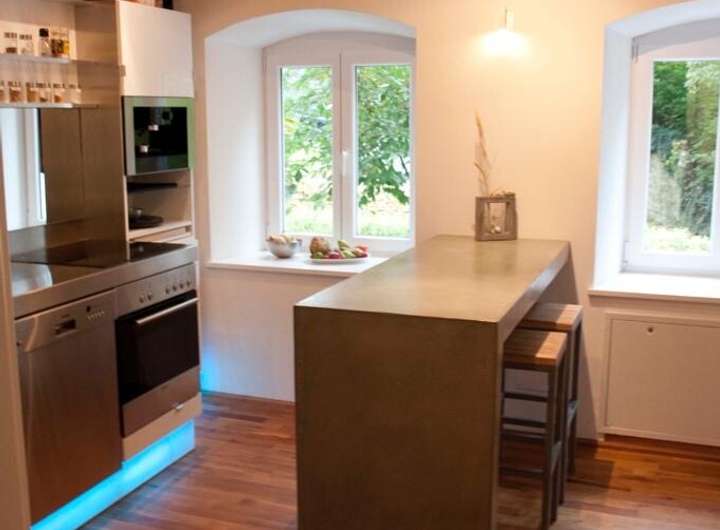 *Einbauküche mit Markengeräten, harmonisch ins Gesamtbild integriert